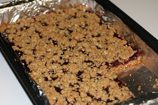 2. Combine brown sugar, flour, cinnamon, baking soda, salt and oats in a mixing bowl. Mix in the softened butter to form a crumbly mixture. Add egg and vanilla mixing until combined (I use my Kitchen-Aid mixer). Mixture should be crumbly but hold together when squeezed. Press 4 cups of the mixture into the bottom of the prepared pan. Spread the jam to within 1/4 inch of the edge. Sprinkle the remaining crumb mixture over the top, and lightly press it into the jam.